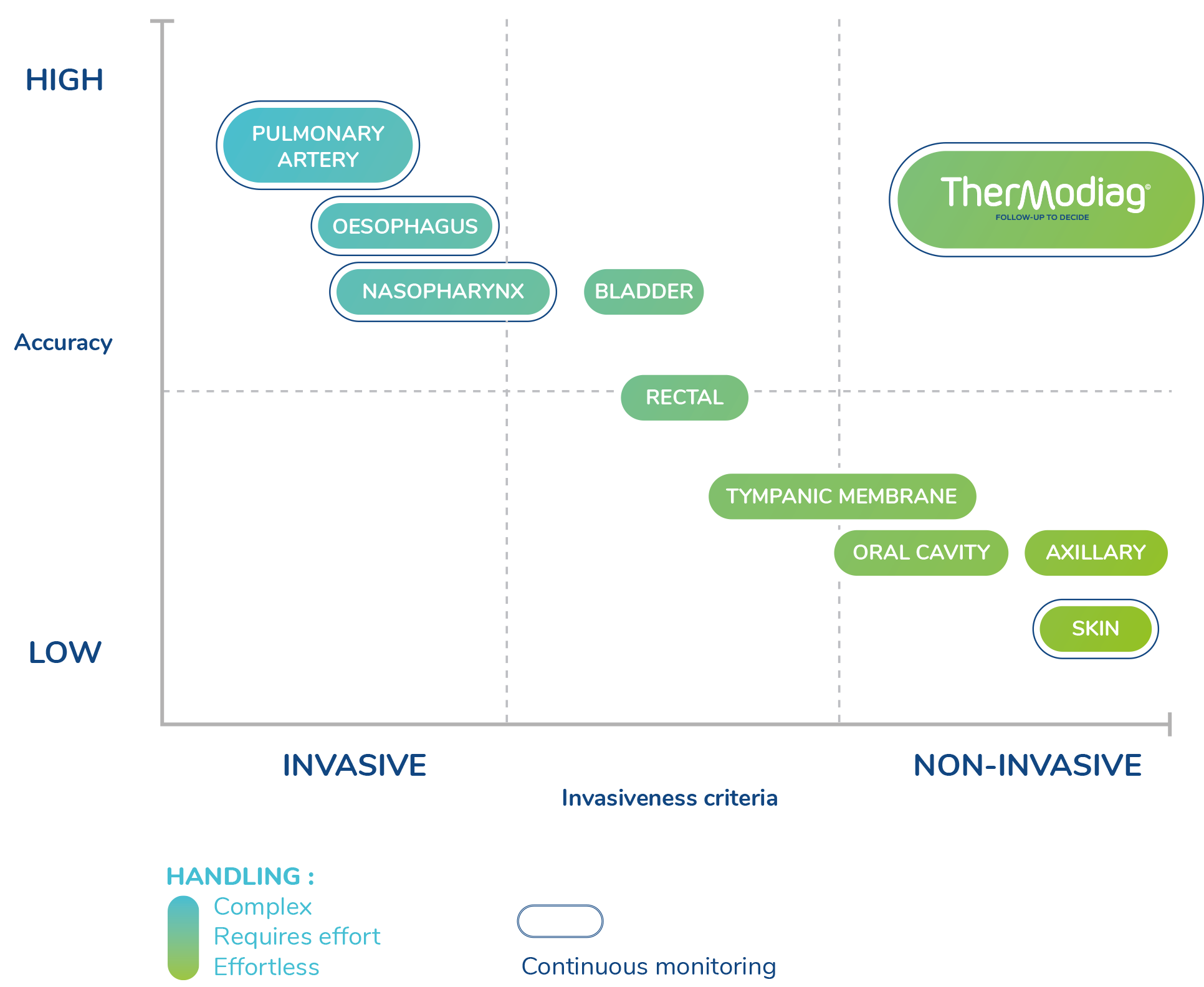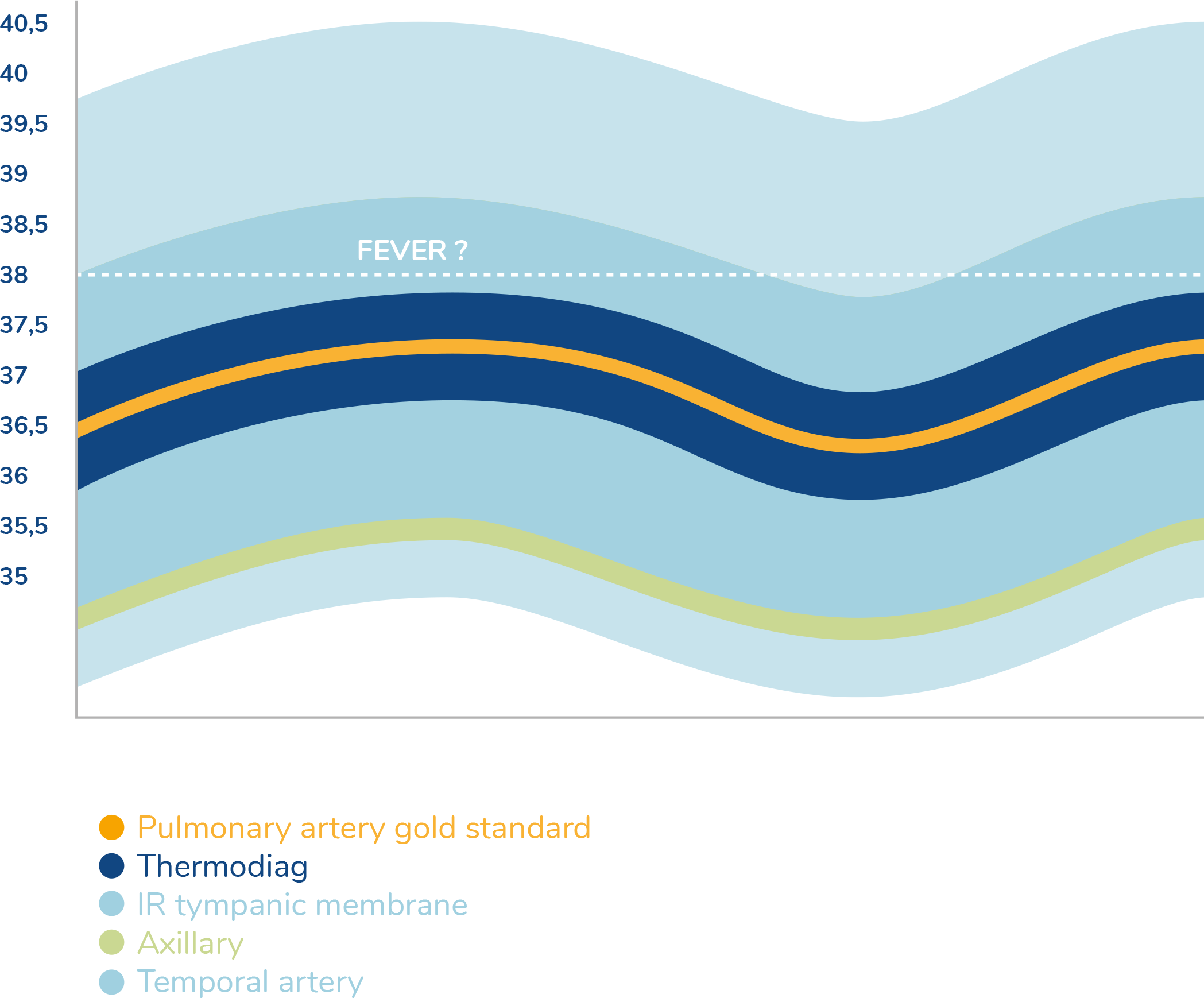 measurement of vital parameters such as temperature with the precision of an invasive device